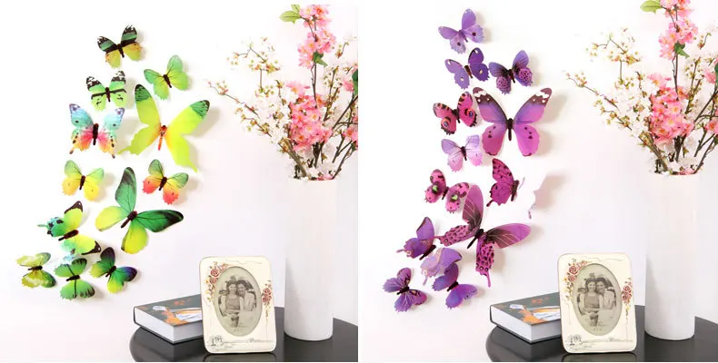 12Pcs Butterflies Wall Stickers New Year Gift Home Decorations 3D Butterfly PVC Self Adhesive Wallpaper For Living Room Decals